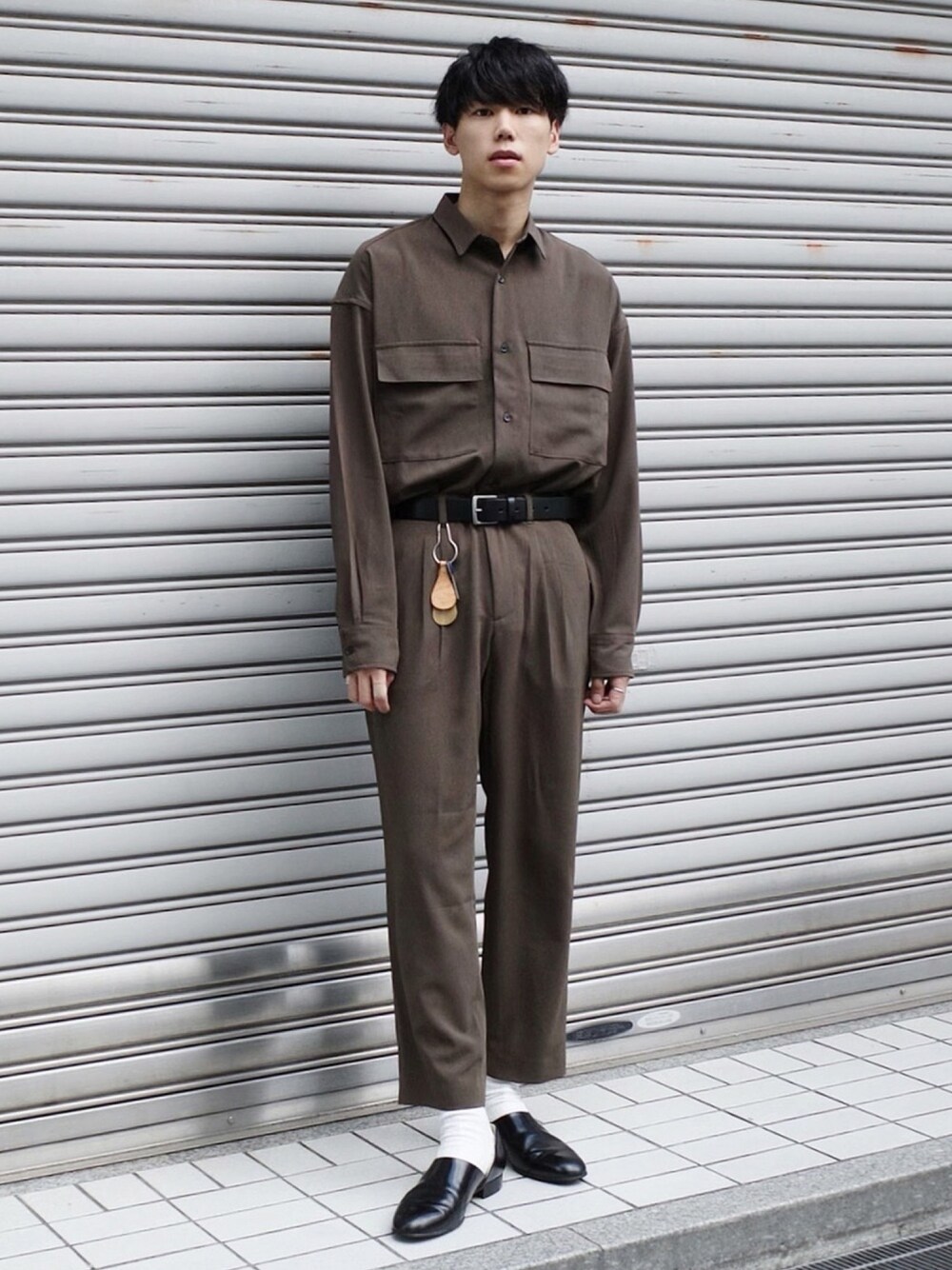 ふじふみのセットアップ「【セットアップ】ブライトポプリン レギュラーカラーシャツジャケット L/S オーバーサイズ CPOシャツJKT&ワイドアンクルシェフパンツ ワンマイルウェア」を使ったコーディネート