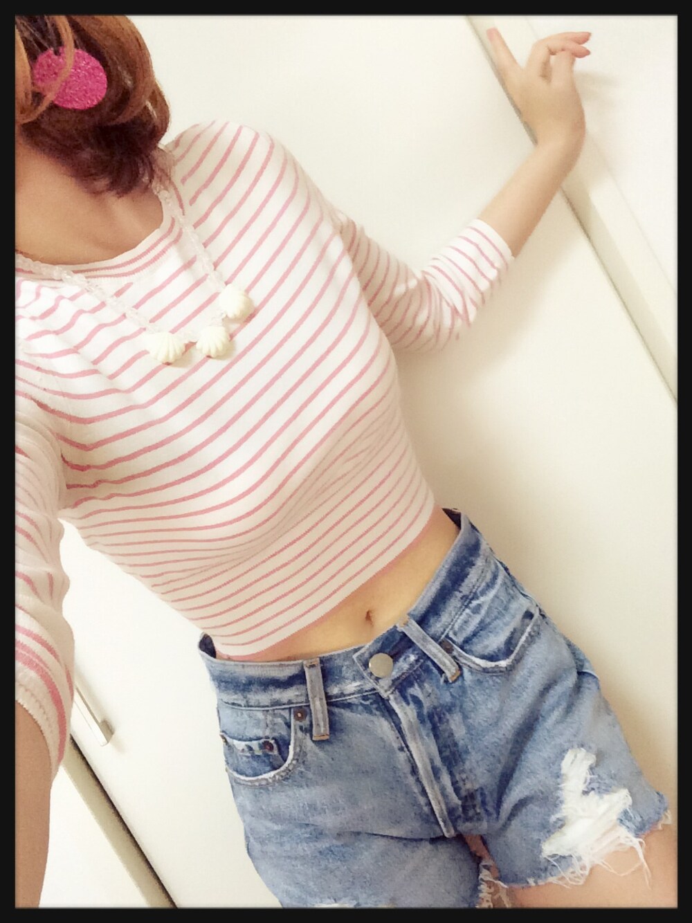 ふみのニット/セーター「ウエスト切替ボーダーニット」を使ったコーディネート