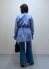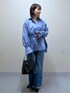リアルバイした、夏まで使えるカラーシャツを使ったコーデです。 ウエストリボンや袖にプリーツをあしらったデザイン性のあるブラウスなので、シンプルにデニムと合わせてコーデしてもおしゃれに決まります♡ 小物はブラック×シルバー系でまとめて、爽やか大人カジュアルコーデに仕上げました。