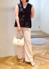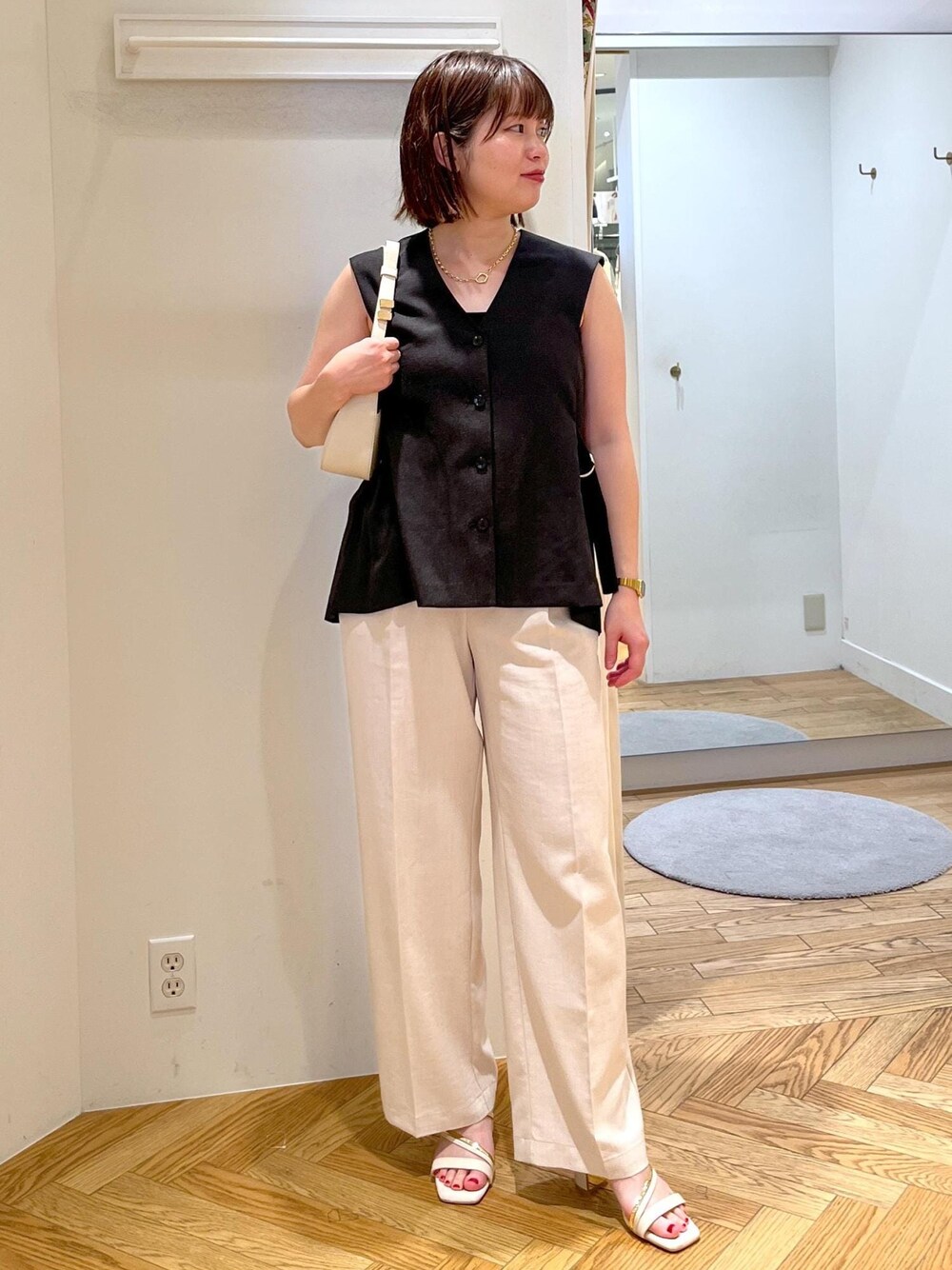 夏場でも楽しめる、モノトーンスタイルコーデです。 トップスはダークグレー系のベスト、パンツと小物をホワイト系で組み合わせて、夏場でも涼しげな印象で楽しめる大人モノトーンコーデにまとめました!