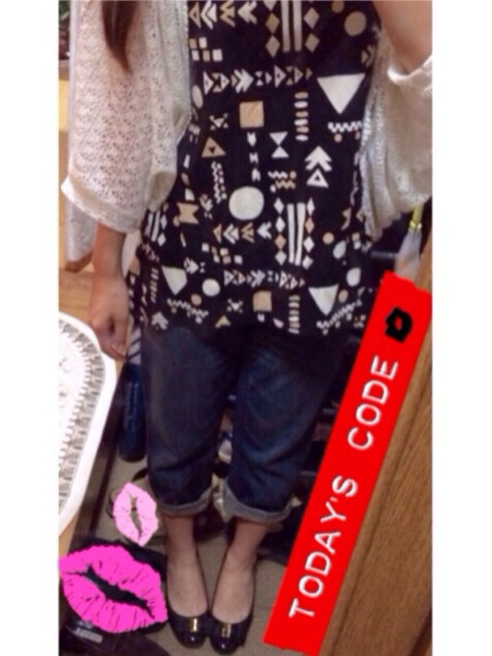 去年買ったタンクトップスとボーイズデニム合わせたよ〜 柄がつぼ♡ (靴下焼け恥ずかしい、、笑)