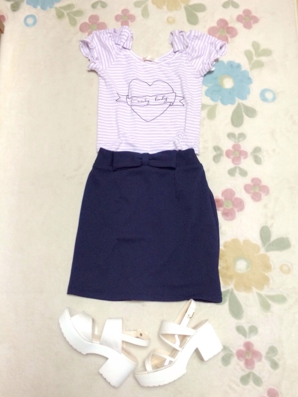 このAnkのトップスは肩のところにリボンがついていてとっても可愛いです! スカートは少しタイトぎみできれいな形♡ ウエスト部分にもリボンが...♡ お気に入りcodeです♪