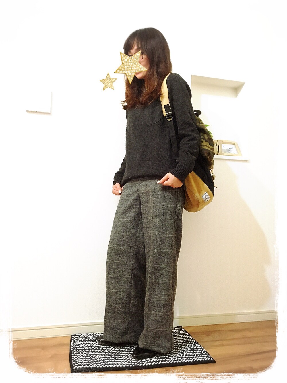 メンズニット✖︎ワイドパンツ(o^^o) ワイドパンツ初挑戦!! メンズニットはSサイズが、ちょうどいい感じ❤️ そして、最近買ったお気に入りの、丸メガネ!