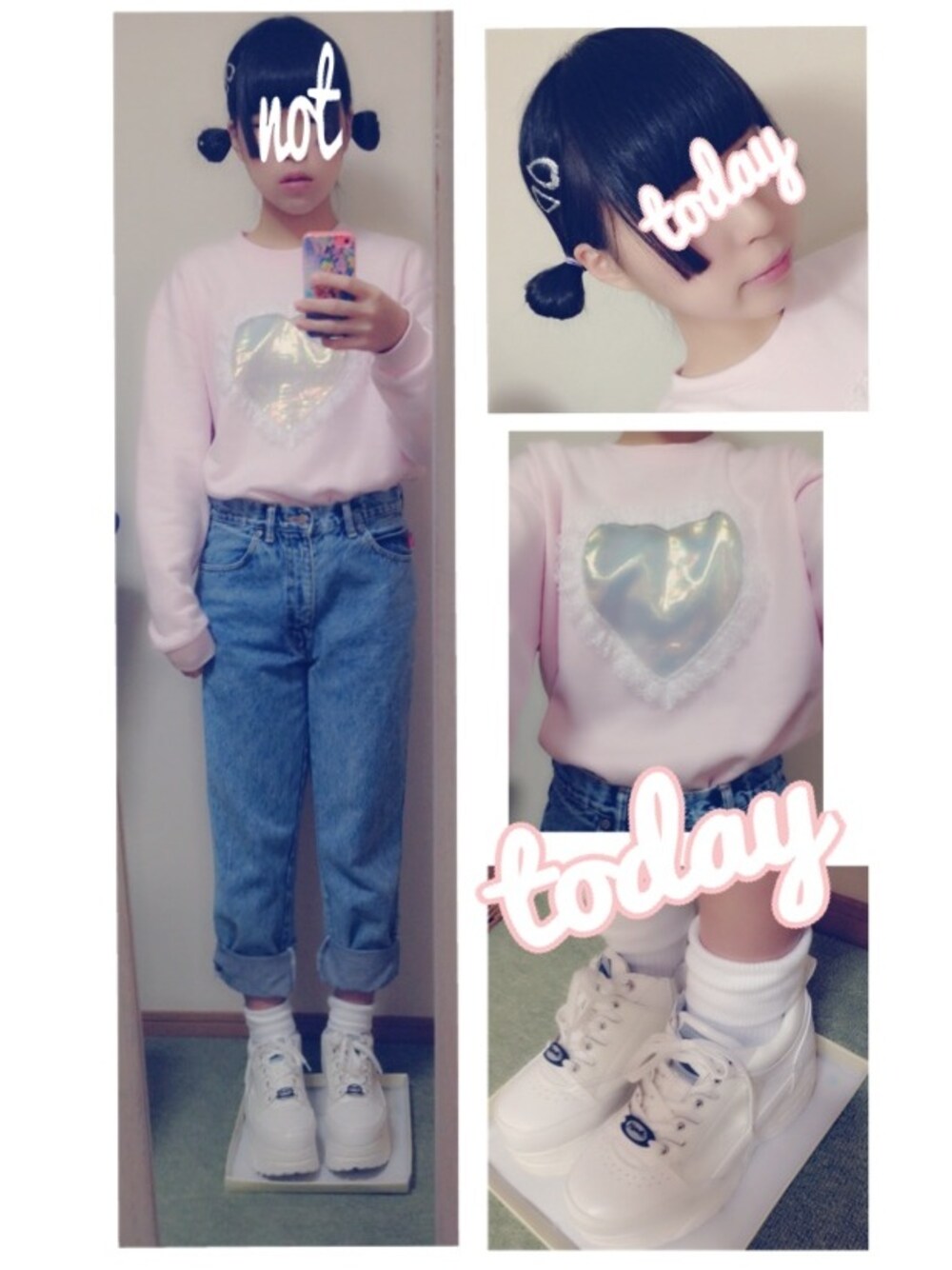 ハートのスウェットをインしてダサカワをイメージしてみました。キラキラのハートピンお気に入り(^ω^)💖