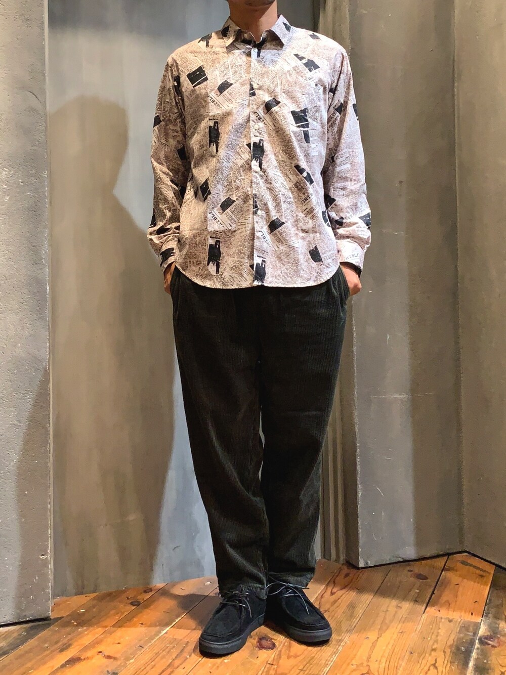プリントシャツをメインに パンツとシューズのカラーは 抑えめにしました🎨