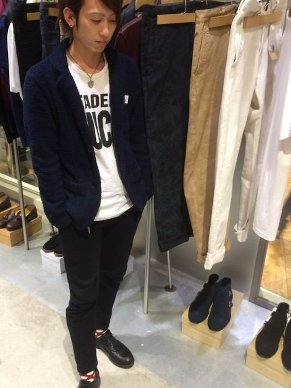 シンプルにまとめたコーディネートです。 靴下に差し色を入れてます。