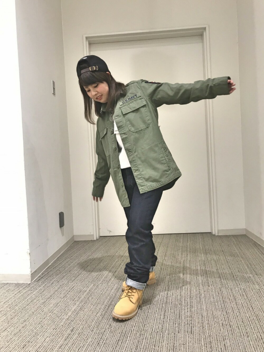 sakiのキャップ「avirex/ アヴィレックス / CURVE BASEBALL CAP MELTON"FLAG"/ カーブ ベースボールキャップ メルトン」を使ったコーディネート