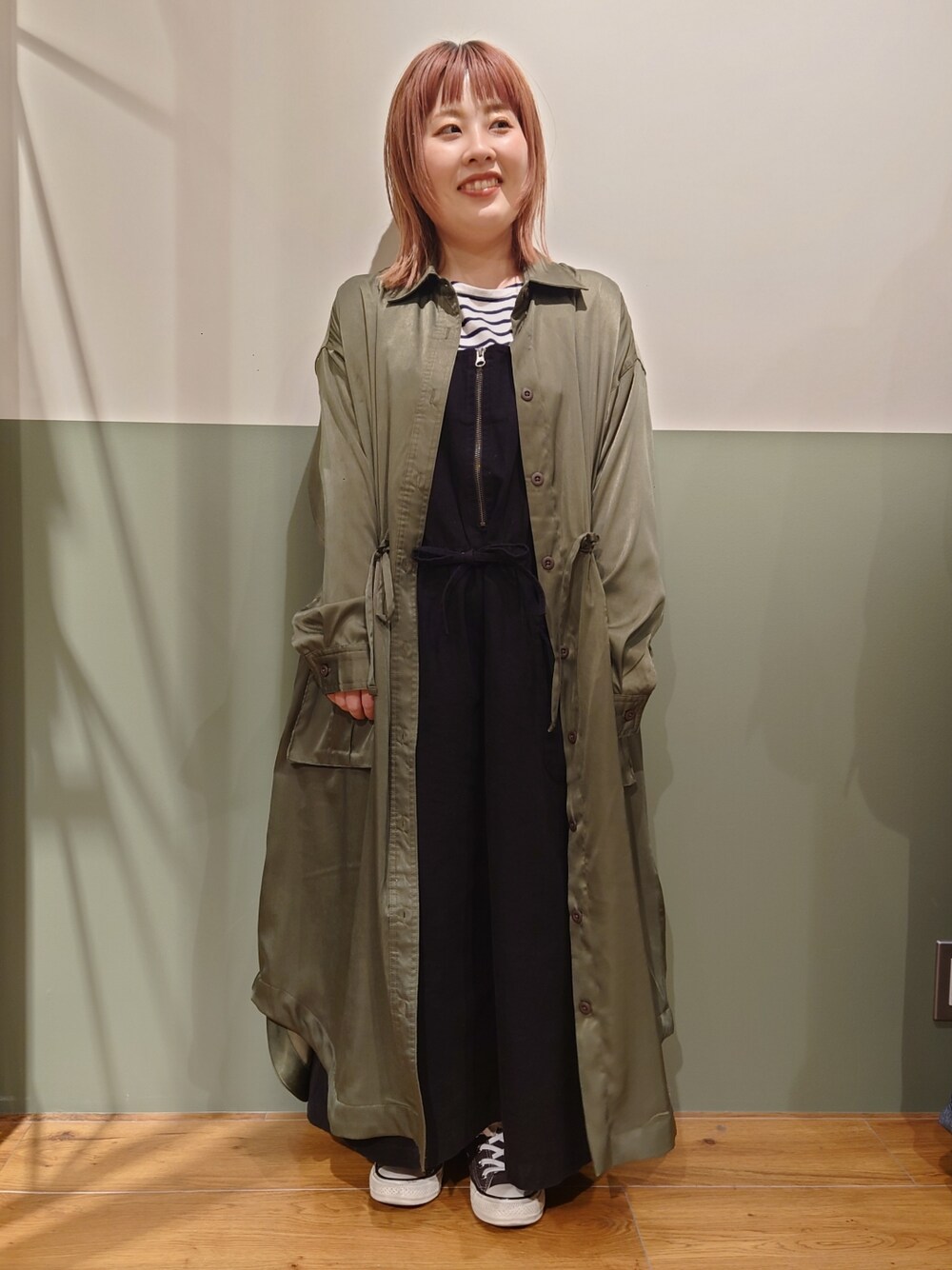 sakiのシャツワンピース「VINTAGE SATIN LONG SHIRT/ ヴィンテージサテンロングシャツ」を使ったコーディネート