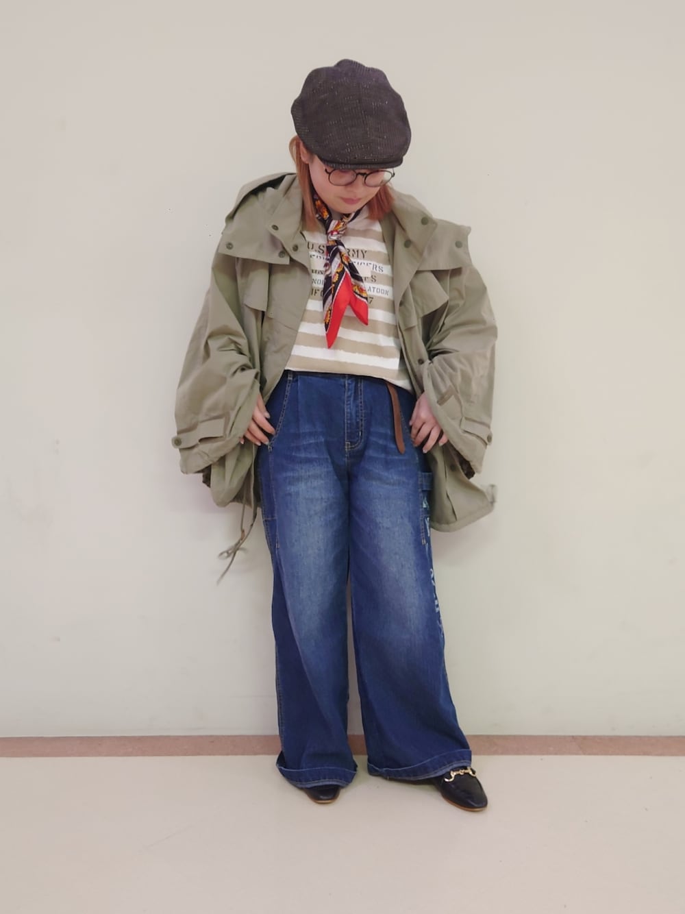 saki(AVIREX 横浜ワールドポーターズ店)のデニムパンツ「ワイドパンツ/ WIDE PANTS TYPE BLUE」を使ったコーディネート