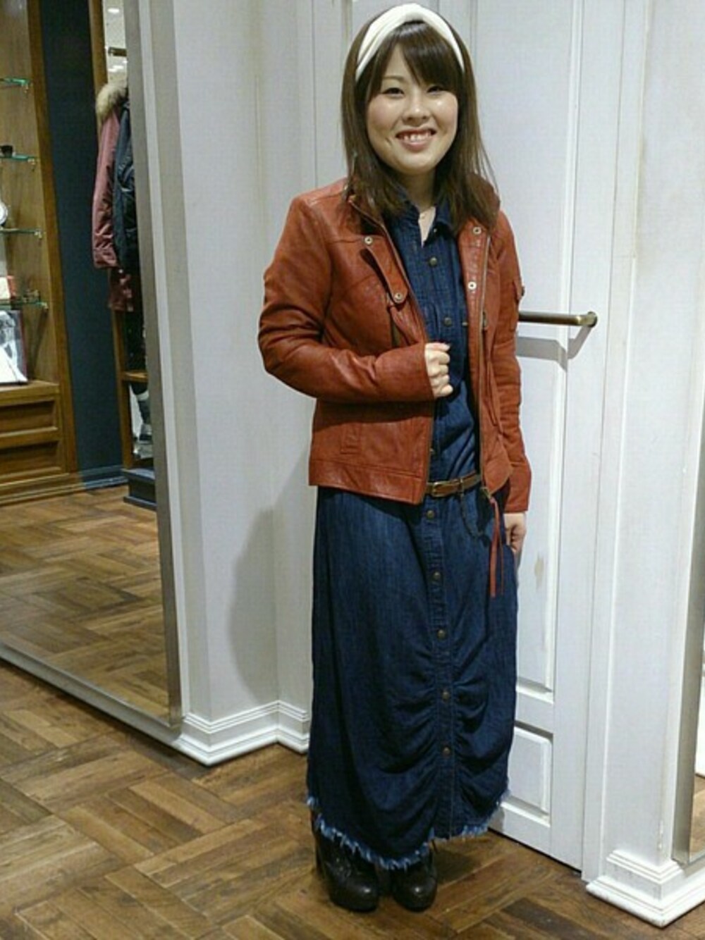 sakiのシャツワンピース「AVIREX(アヴィレックス) レディース 「TYPE BLUE(タイプブルー)」 デニム ミディ ワンピース【FUDGE/9月号掲載アイテム】」を使ったコーディネート