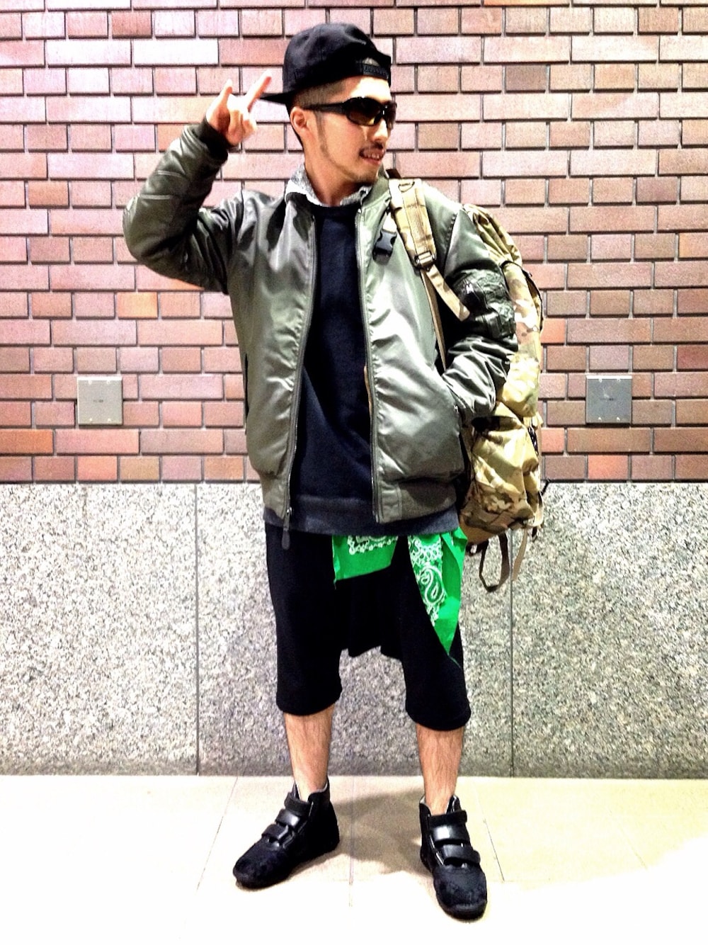 What's up! ヒッチハイクコーデ第二弾(^_^) こちらも大きめMA-1で、スタジャン風にコーディネートしました。