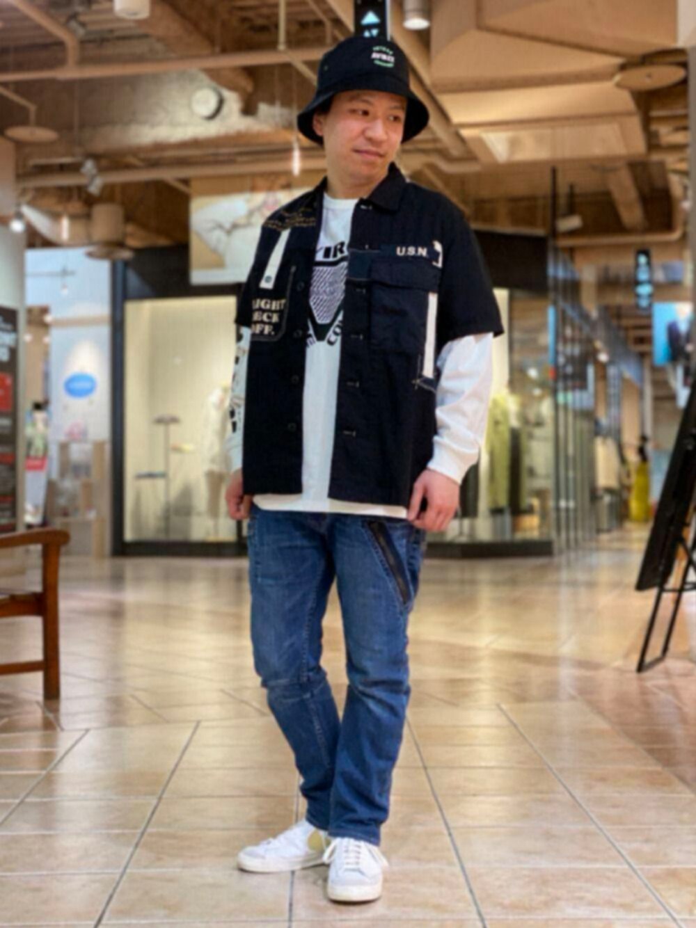 SUGAYA!(AVIREX ららぽーと立川立飛店)のシャツ/ブラウス「リメイク ミリタリーシャツ /S/S REMAKE MILITARY SHIRT」を使ったコーディネート