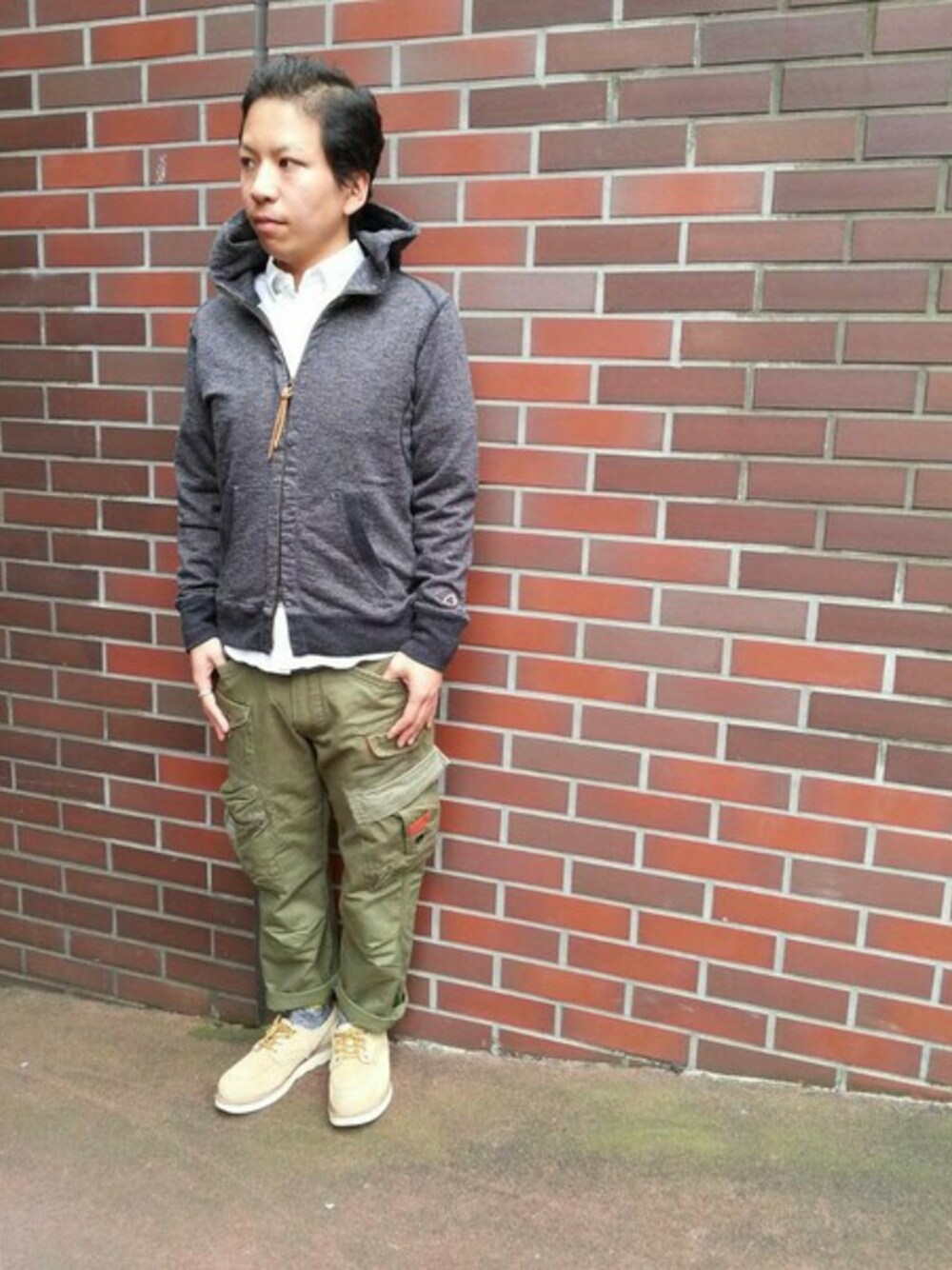カーゴパンツを使った秋コーディネート。