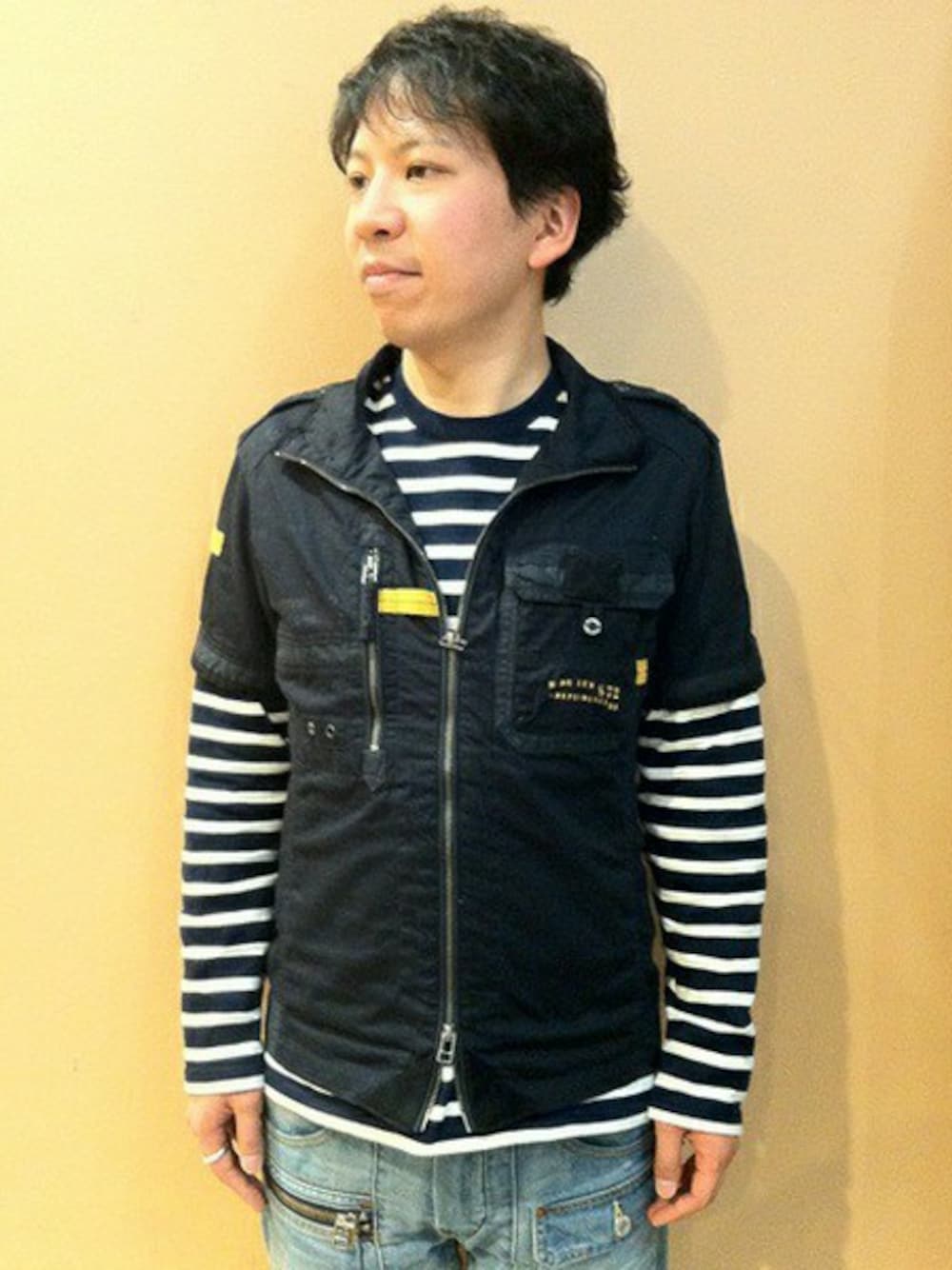 シンプルなレイヤードスタイルですが、AVIREXのミリタリーシャツで存在感アップです!