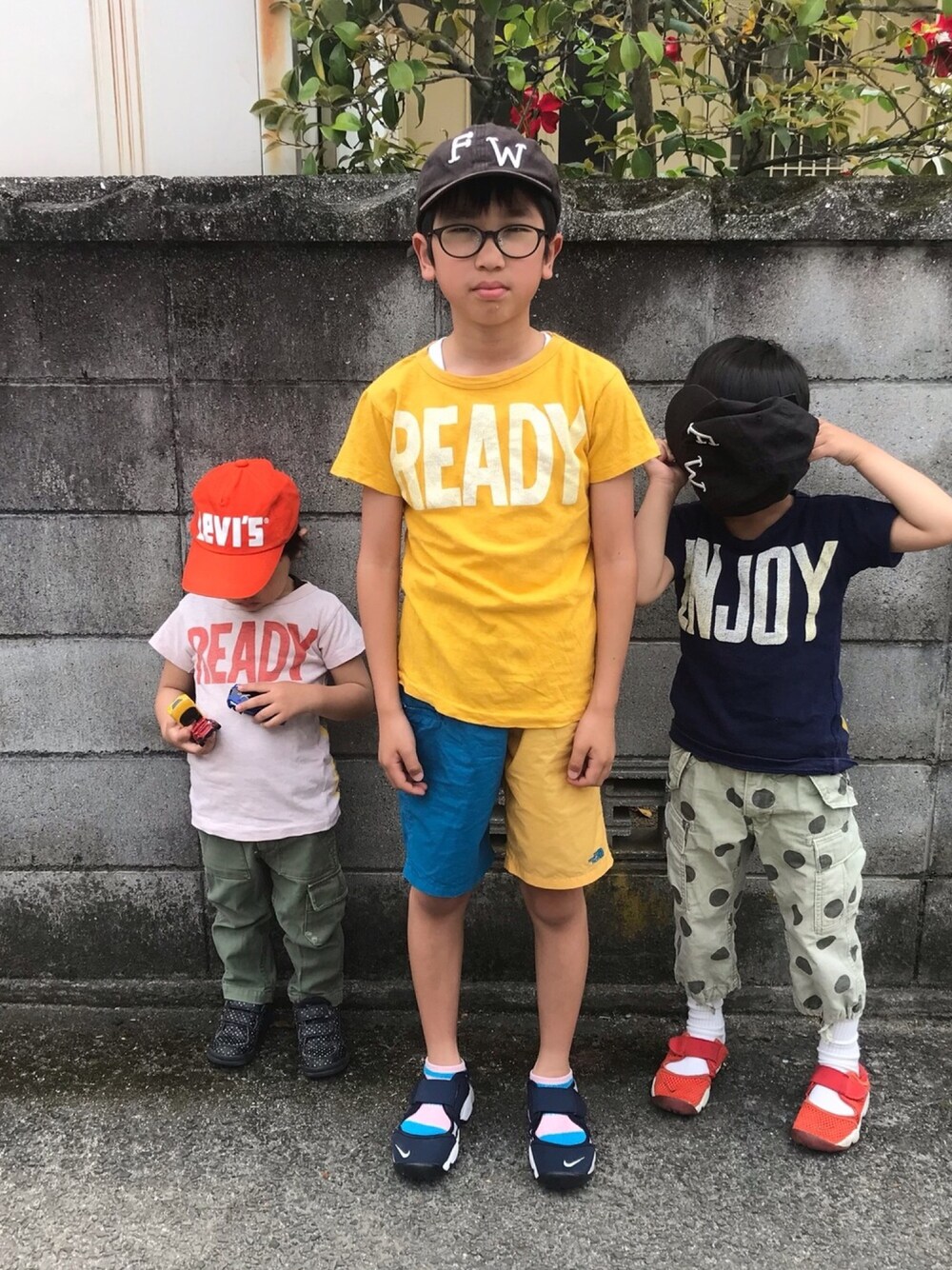 いつもの日曜撮影会は休日出勤の予定がキャンセルになり、、、そのあと嫁ちゃんの実家を嫁ちゃんの母の思いつきで浴室の塗装する一日になりました🤯バタバタ、、、 なので撮り溜めから放出💨 そういえば#令和ピンクを纏え❓❓のタグこの撮り溜めがちょうどいいことにさっき気付き投稿してみました✋ 長男のピンクボーダーソックスと三男のピンクTで💖 古着DDの1単語プリントTのリンクコーデ🤩このTシャツバックプリントもカッコいい🤩 そして長男が小さい時に買った古着かフリマで買ったリーバイスのキャップを8年越しでやっと三男が3分だけ被ってくれました😭何故か上二人とも嫌がりまだ1回した被った事のないキャップ🧢次はいつ被ってくれるのでしょうか😭