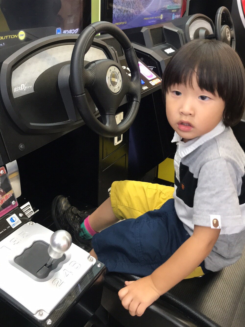今日は夕方から仕事になって憂鬱な日😵 いつも通り長男のリクエストでゲームセンターに🎮 三男は気分は走り屋のようです🏎