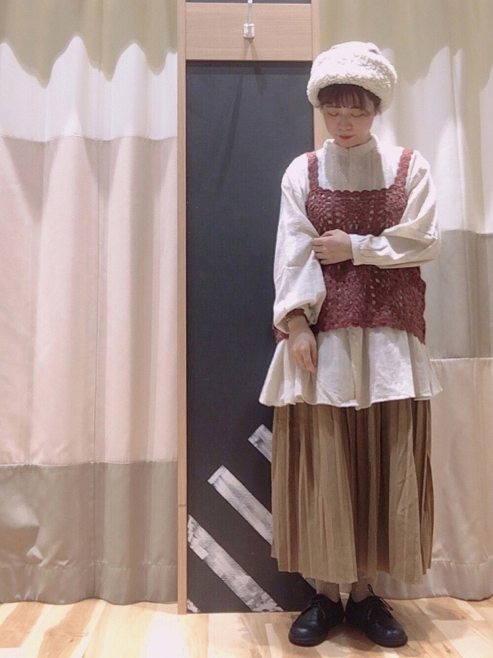 fune106のベスト「35thかぎ針モチーフベスト」を使ったコーディネート