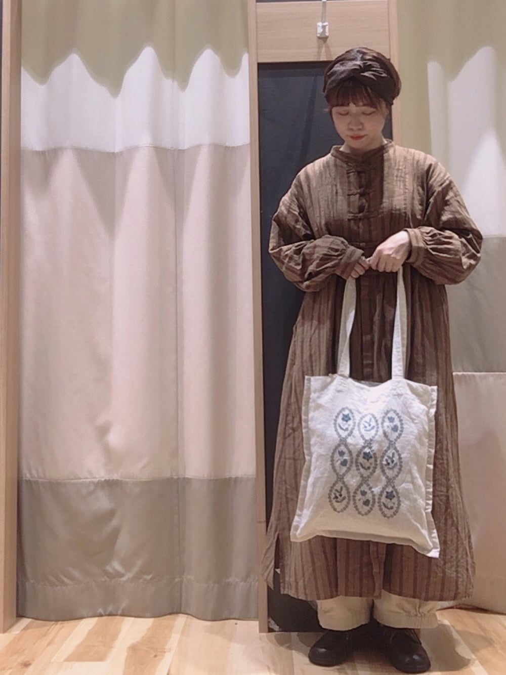 ご覧いただきありがとうございます! ◎チャイナボタンワンピースコーデ 今回は出勤コーデです🐥 チャイナボタンが可愛いワンピース! スタンドカラーですが首元ゆとりがあるので、スタンドネックなインナー重ねて見せても👌🏻 長さはそんなに長くないので、低身長さんでも着れそうです! わたしは秋らしいコーデュロイ素材のパンツと合わせてみました 〜〜! ぜひお近くの店舗でご試着してみてください!