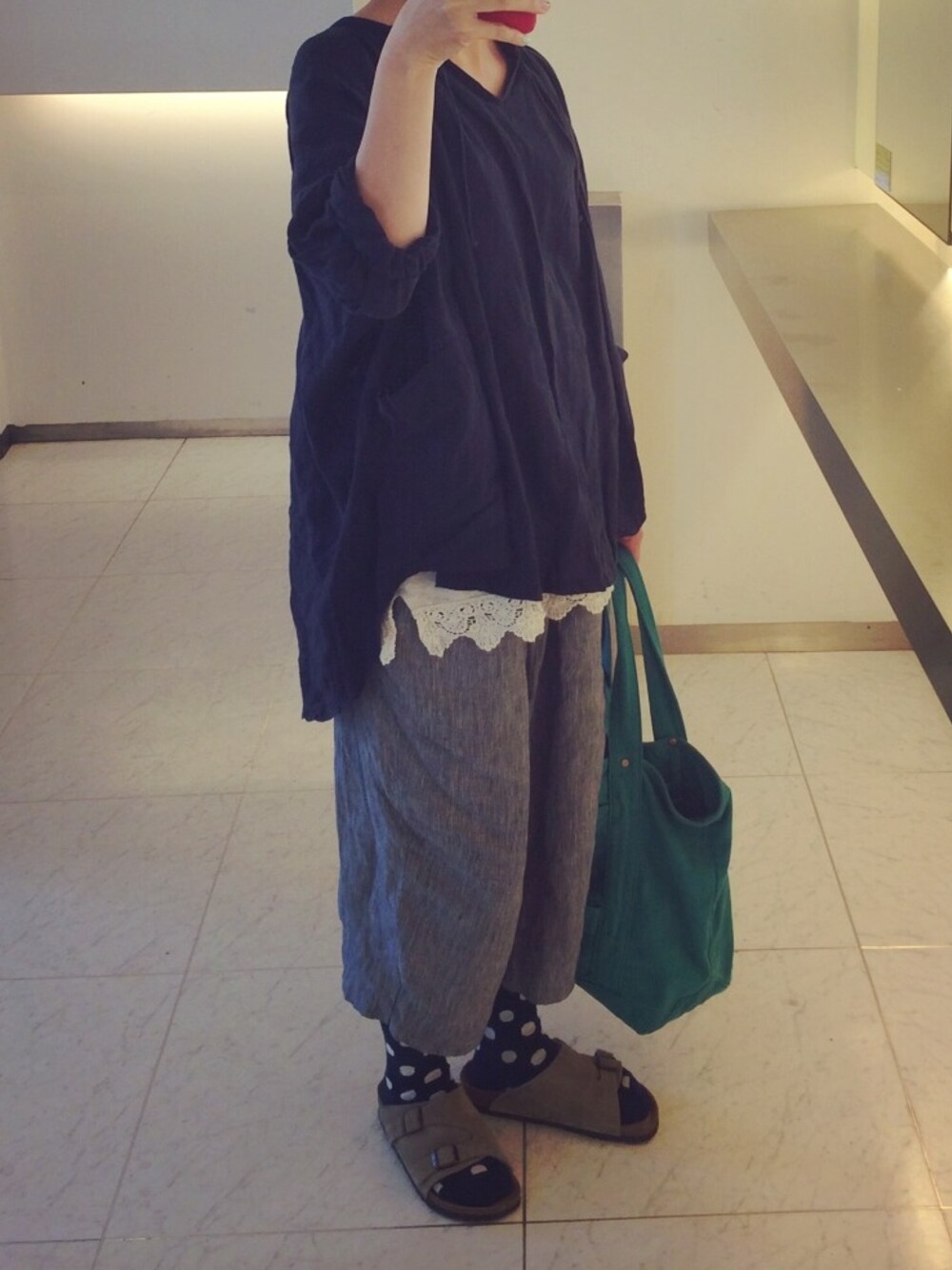朝から頭が働かない…(゚ρ゚*) ボー 今日のコーデもなかなか決まらず、悩んだ時はたいてい好きなカラーのネイビーに頼ります(。-∀-)ニヒ♪ トップス:作家さん インナー:niko and パンツ:bongout