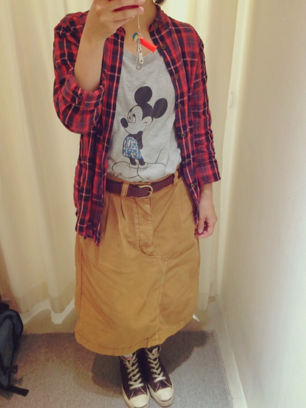 雨降り。。 今日は仕事お休みなのでミッキーTを❤︎ そしてスカートdayにしてみたσ(≧ε≦o)  シャツ:soi-e インナー:ブランド不明 スカート:cubesugar