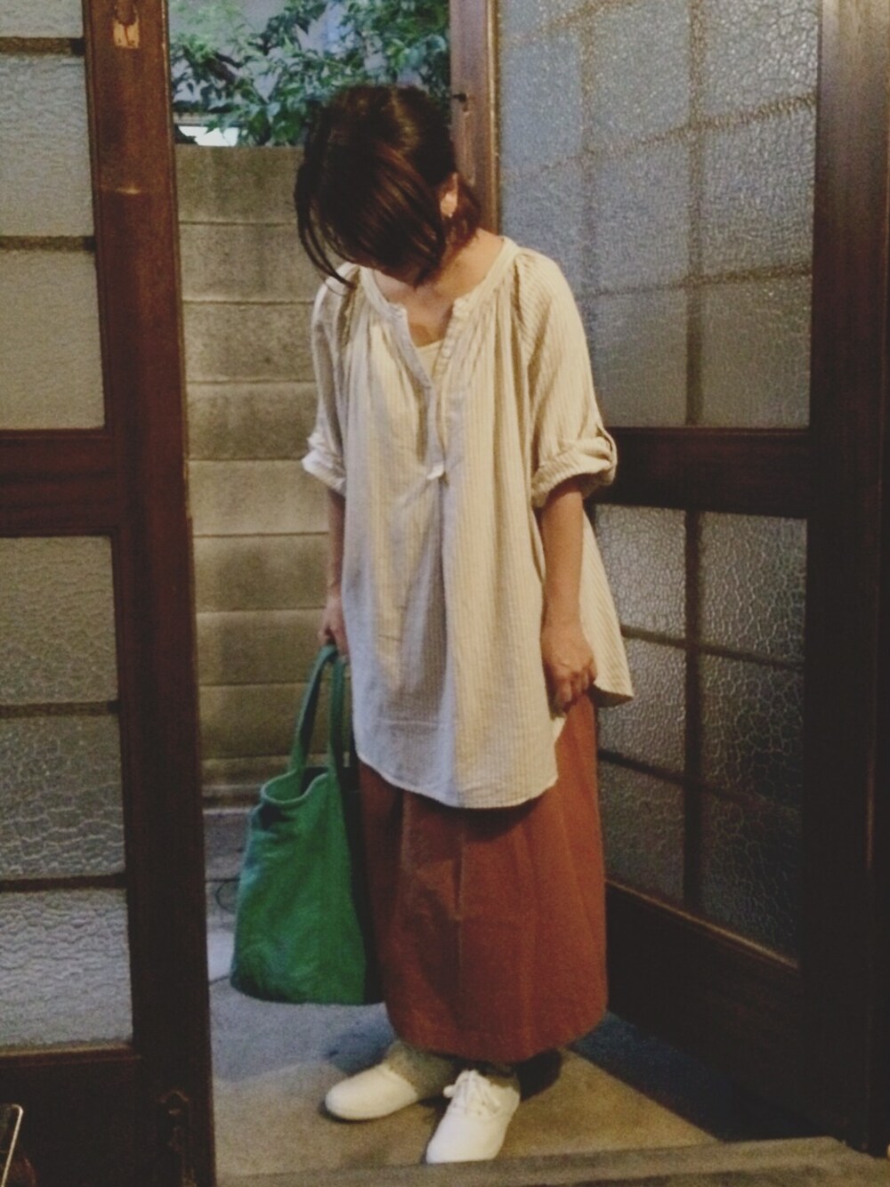 ホワイト系のスニーカーを着用したレディースの夏コーディネートの1枚目の写真