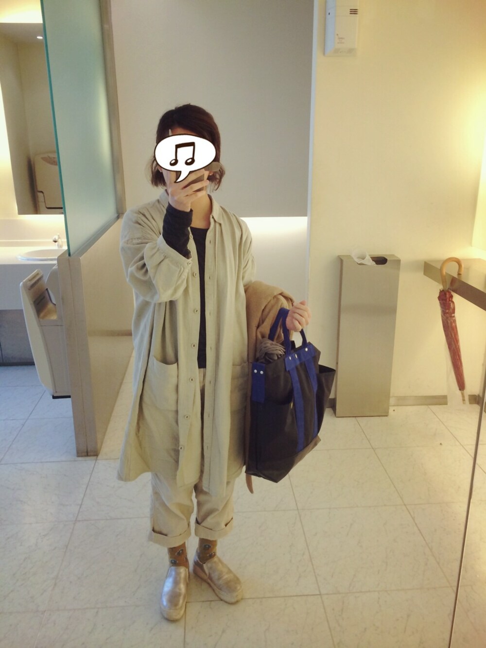 お久しぶりの投稿。 羽織り:sm2 インナー:uniqlo パンツ:niko and バッグ:hang minor