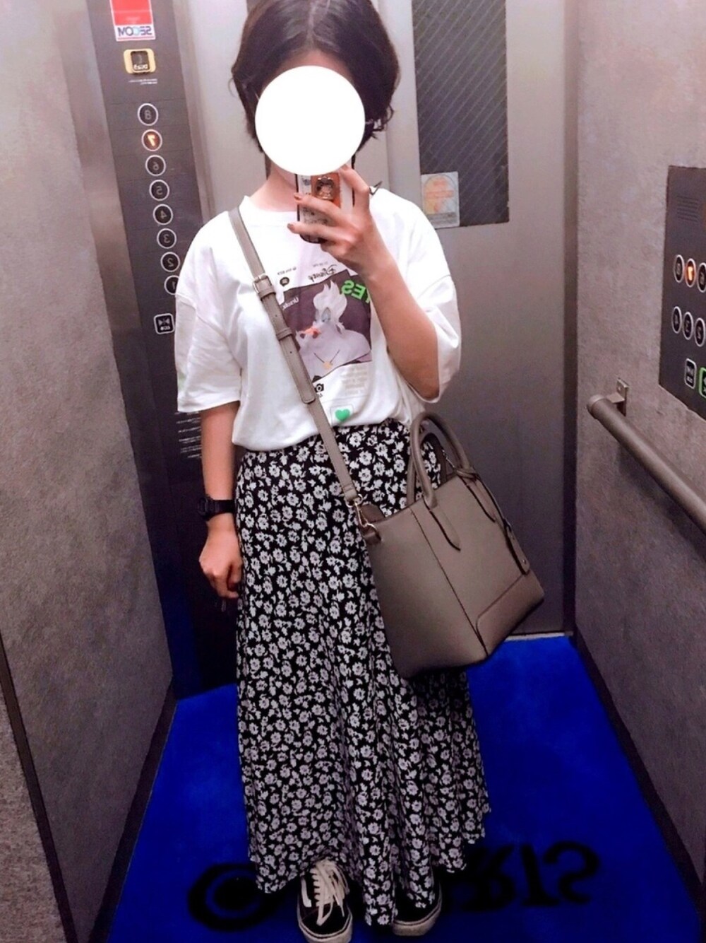 Tシャツ可愛い 誰も撮ってくれないからついにエレベーターの中で撮るやつしてしまったわ