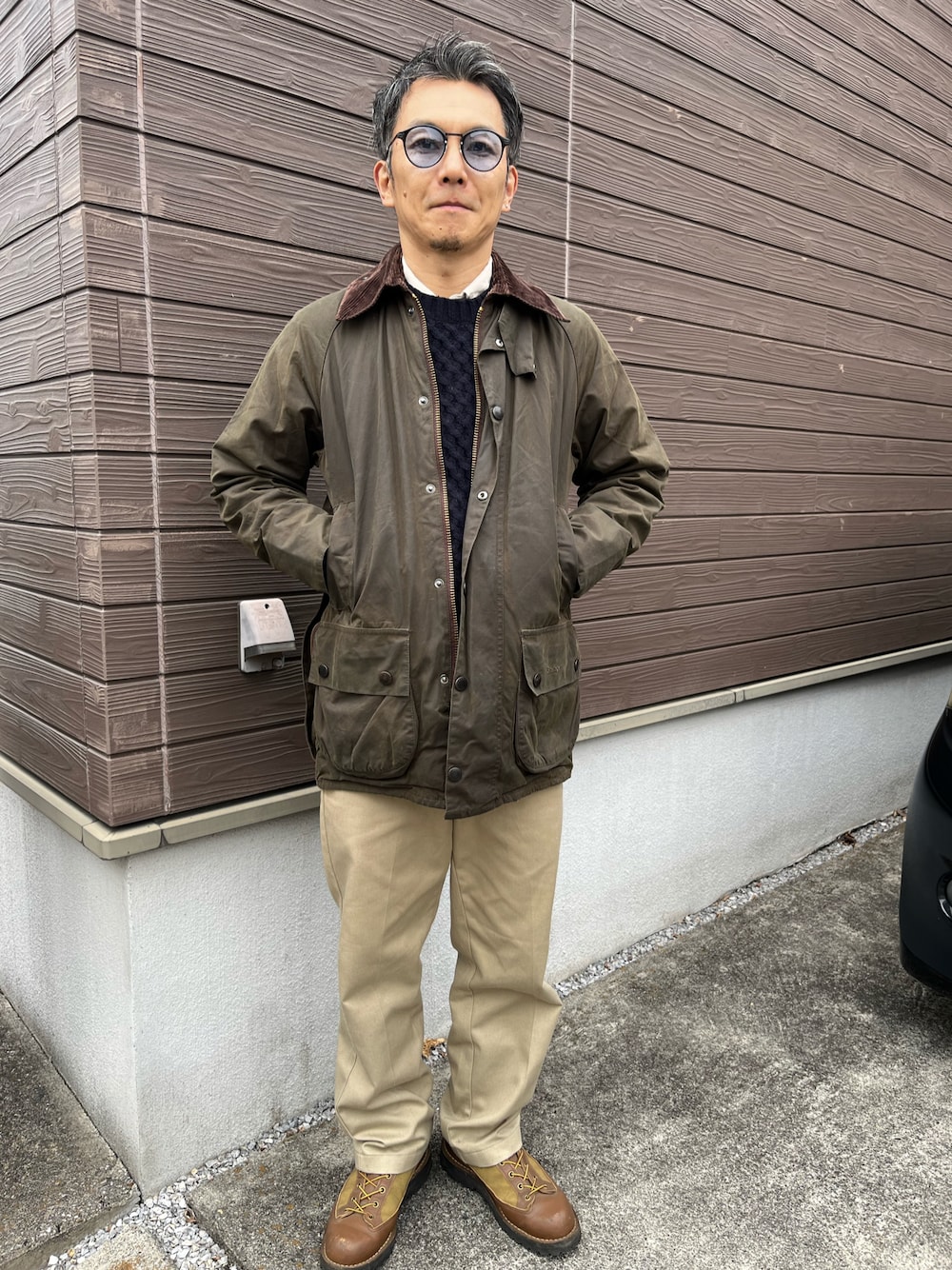 Barbourはビューフォート派で、腰まで覆う絶妙な丈とオイルドにしか出せない色が好き 今日はジャケットに合わせて、珍しくトラッドぽくまとめてみました。 Barbourコーデは色々試してますが、細身パンツにドレスシューズもカッコいいですが、 ダナーライトにチノパンも合いますね⭐️