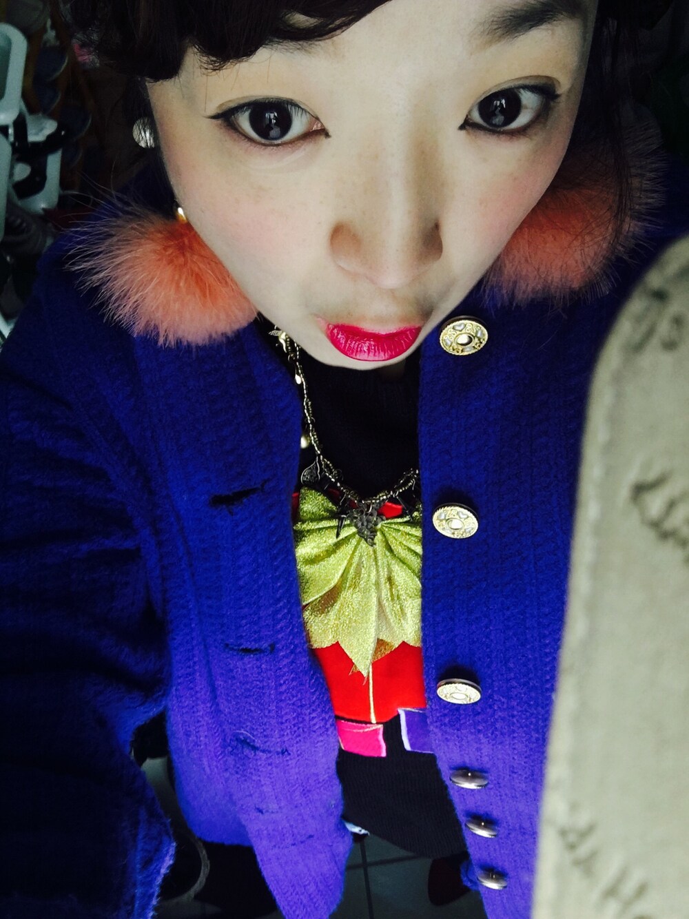 H&Mのプレゼントニットはド派手なプリントが💪🏿古着のオーバーサイズなニットカーデはロイヤルブルーにゴールドボタンが絶妙