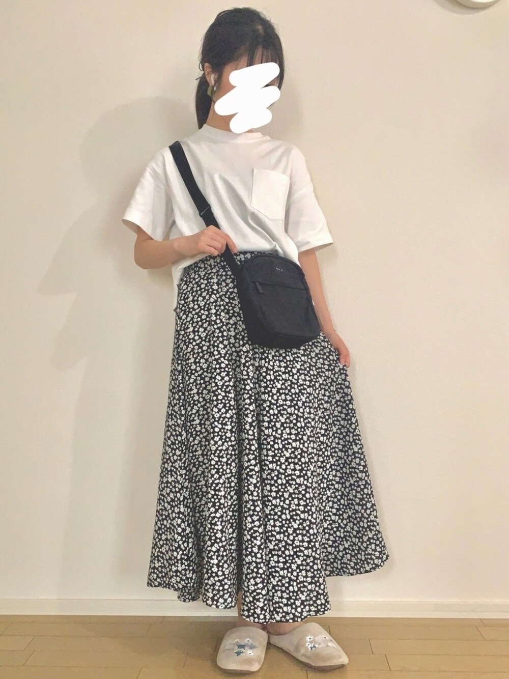 これに黒のスポサン合わせました✌🏻 暑いねえ、初夏だねえ🌤 花柄スカート、ウエストゴムで 着やすくてお気に入りです🥺