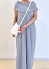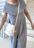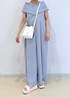 シナモロールをイメージしてブルーのオールインワンを着ました♪ 小物も全て白で統一し、シナモロールぽく柔らかいコーディネートにしました!