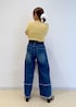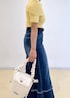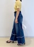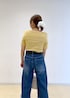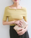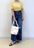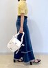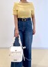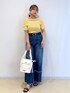 黄色のオフショル風トップスにデニムを合わせた夏らしいカジュアルなコーディネートです♪ バッグをオフホワイトにすることで夏らしさをさらにプラスしました! ※シュシュはスタッフの私物です。