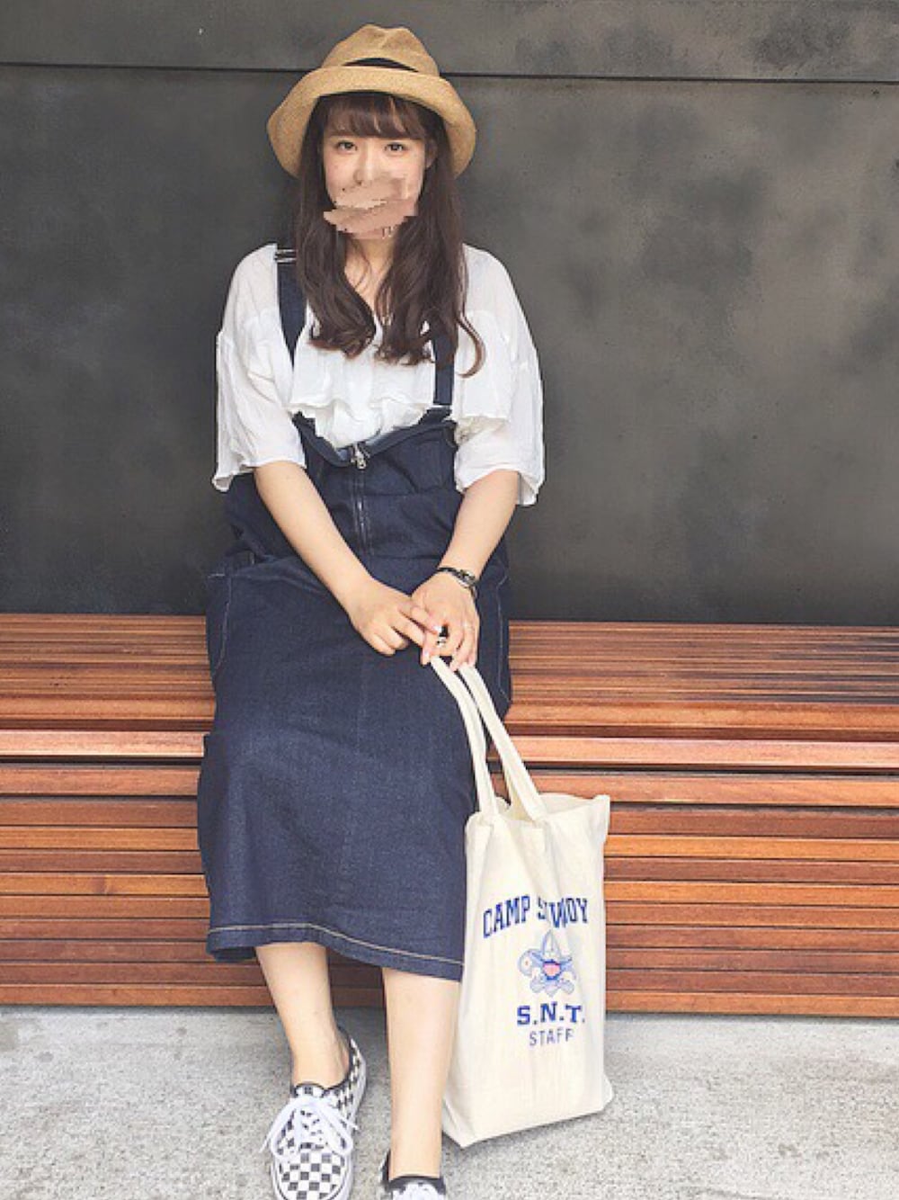 fのジャンパースカート「配色ステッチジャンスカ」を使ったコーディネート
