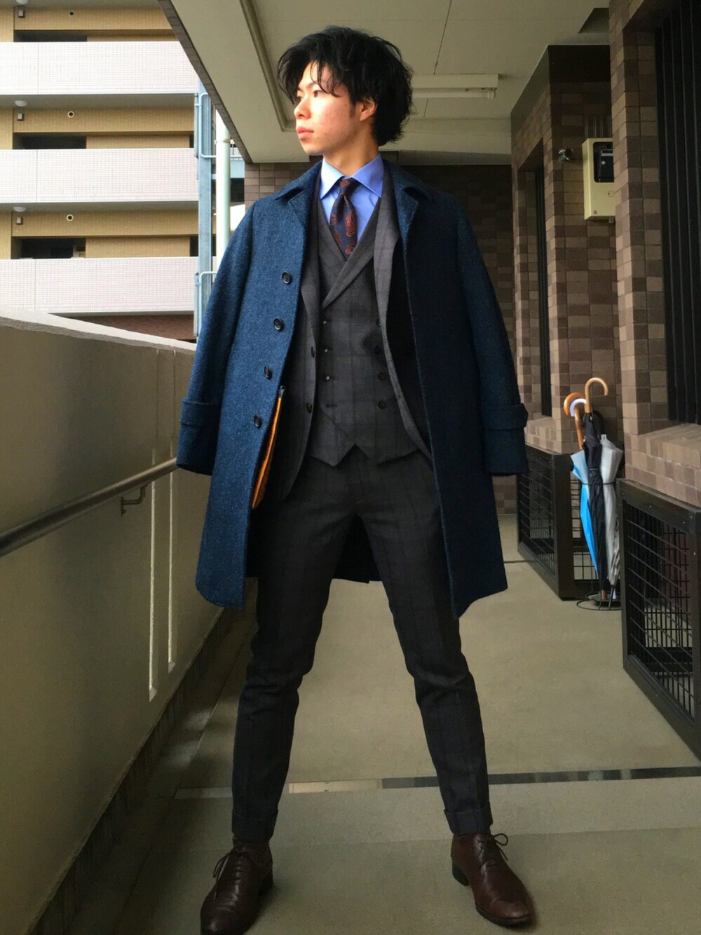 久々の更新。 そして珍しいスーツスタイル。 お気に入りのウィンドーペンのブラウンスーツ。 ブラウンスーツに相性抜群なハリスツイードのネイビーコート。 このスタイル、本当に気に入ってます。 何か面白い着こなしやアドバイスありましたらコメントまで🙌