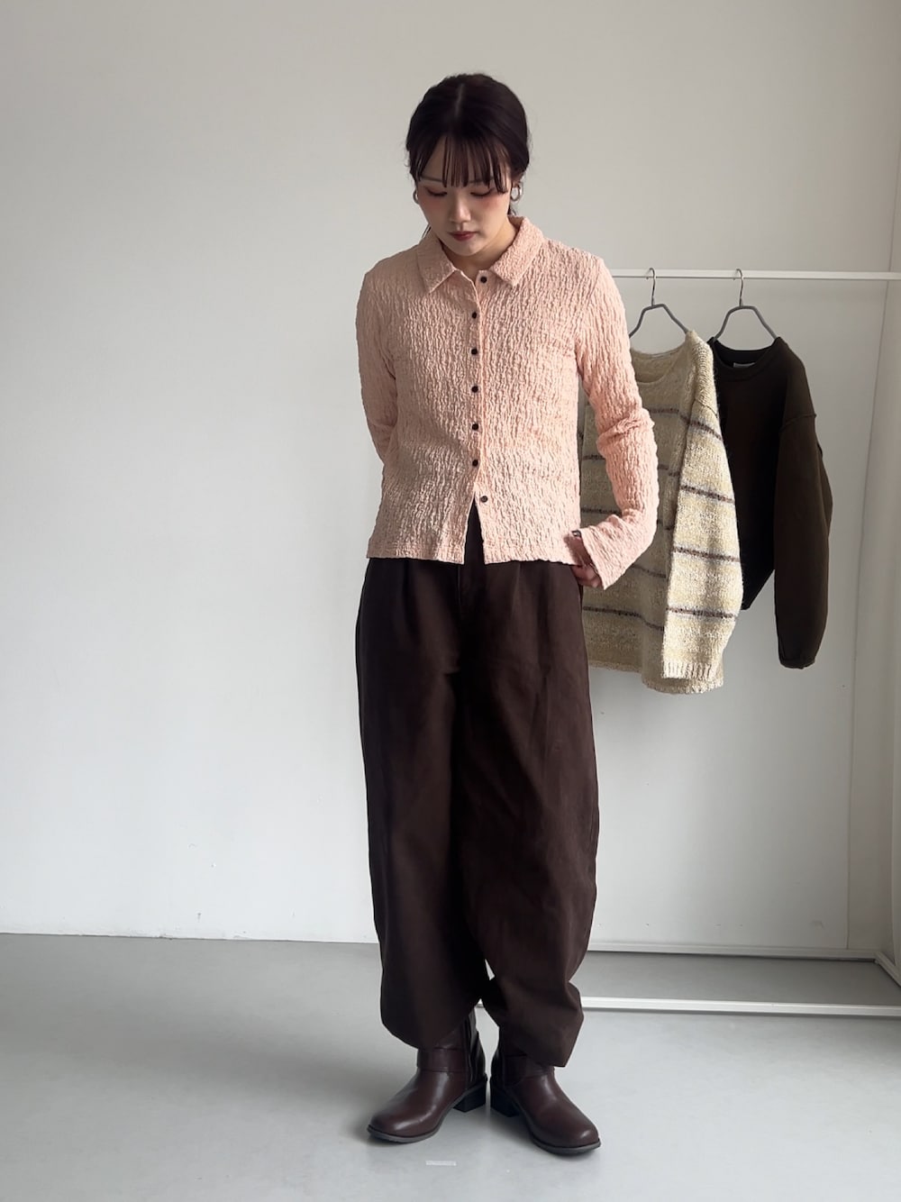 今年流行りのブラウンはピンクと合わせると一気にオシャレ上級者に◎