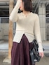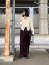 レイヤードニットにボルドーのパンツで大人カジュアルに合わせました! ニット素材なので今からでも着れます◎