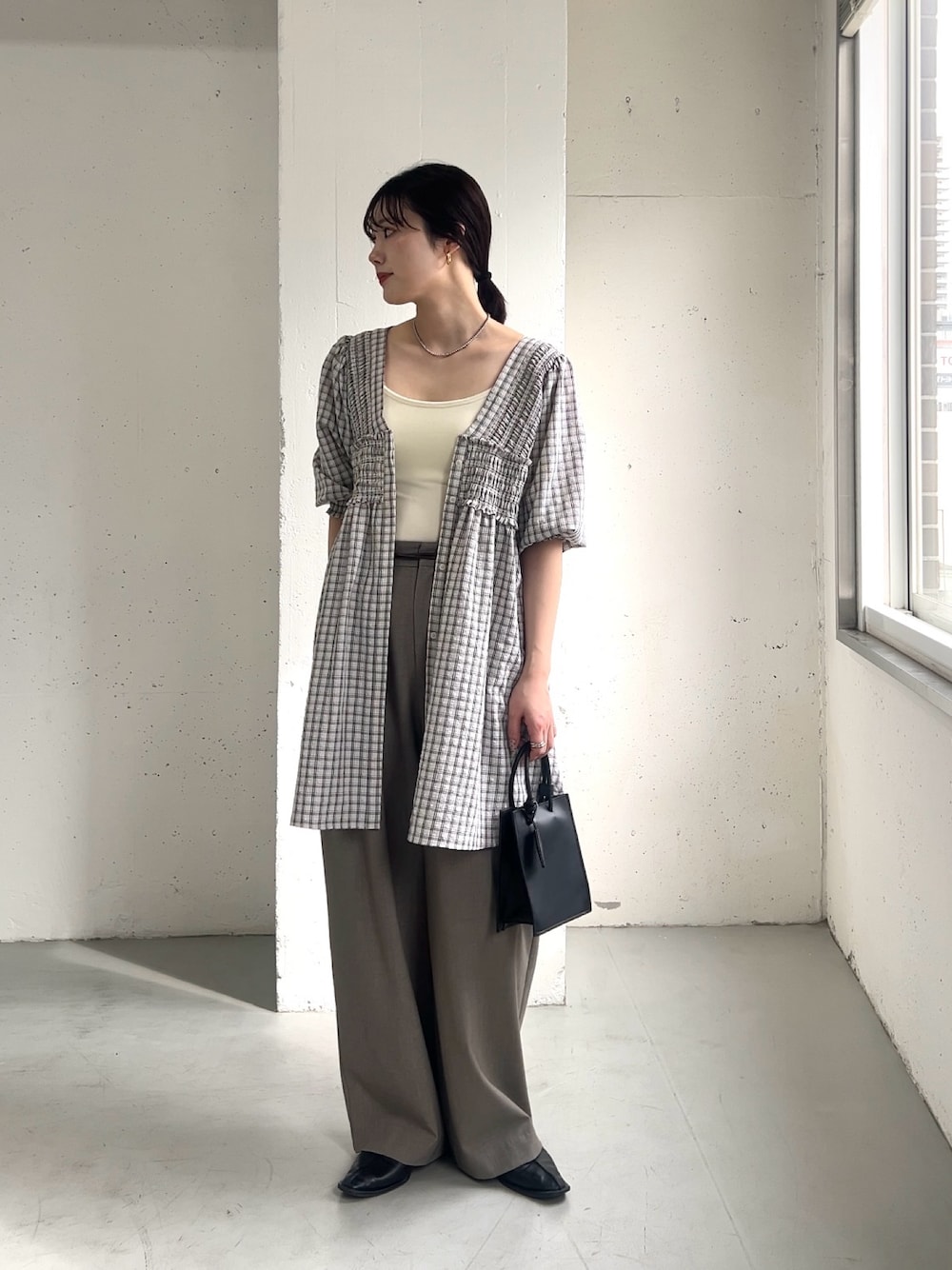 furi82(KBF ピオレ姫路)のワンピース「2WAYシャーリングチェックミニワンピース」を使ったコーディネート