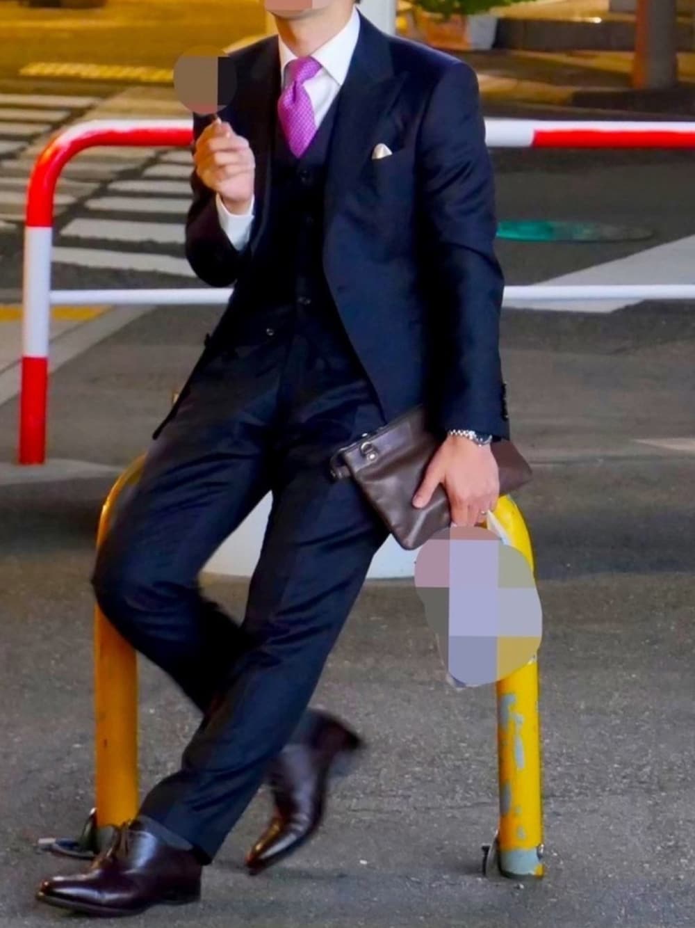 二次会終わりにアイス食べてます。 ピークドラペルにハマってきた頃。 広島えびすテーラーでオーダーしました。 カノニコスリーピースで10万以下はお得だと思います。 フィット感、着心地も良いのでおすすめです。