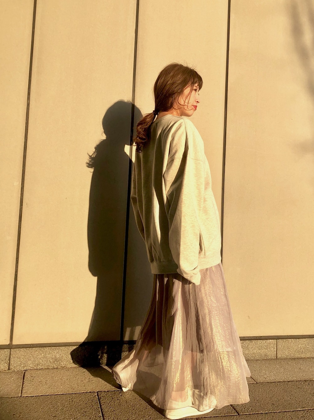 ニットに飽きたし、この時期にはスウェット! ゆるっと着てスカートで抜け感出したら🙆🏼❤️