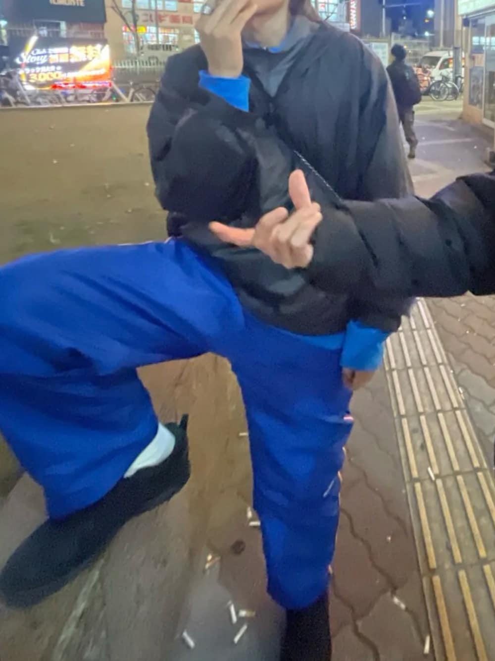 スニーカーはサロモンのX WARD Leather GORE-TEXです。上下ナイロン、中のフリース全てナイキで古着です。全部1000円代でした。スピンズで買ったリングも1000円です。青好きな方はいかがでしょうか?