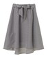 マスタード系イエローで華やかに。 袖のフリル感が女性らしいです! トレンドのギンガムチェックをスカートに取り入れました! 足元は楽チンのスリッポン。
