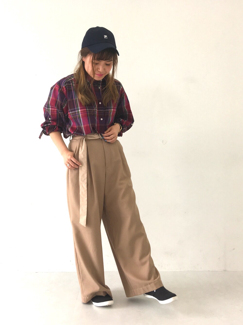 ご覧いただきありがとうございます😊 久々にチェックシャツを着ました! 袖をまくって抜け感をプラスすれば長袖でも暑苦しく見えません(*´꒳`*) ワイドパンツはゆったりしてるけどウエストはキュッと締められるのでシルエット◎。