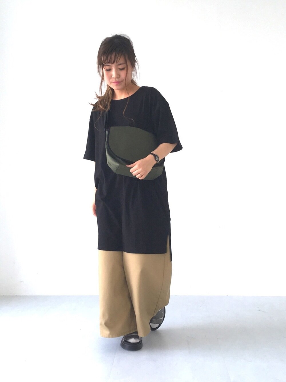 ふたわたりのワンピース「・ドロップショルダーTワンピース ○★」を使ったコーディネート