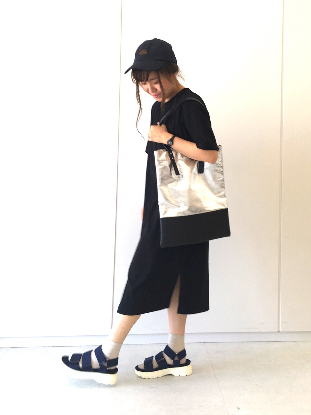 人気のTシャツワンピース。 横のスリットでぬけ感をプラス! 小物でちょっと華やかに⭐️ スキニーやレギンスと合わせても◎。