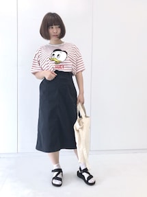 ふたわたりのTシャツ/カットソー「・ロールアップ袖ボックスTシャツ*」を使ったコーディネート