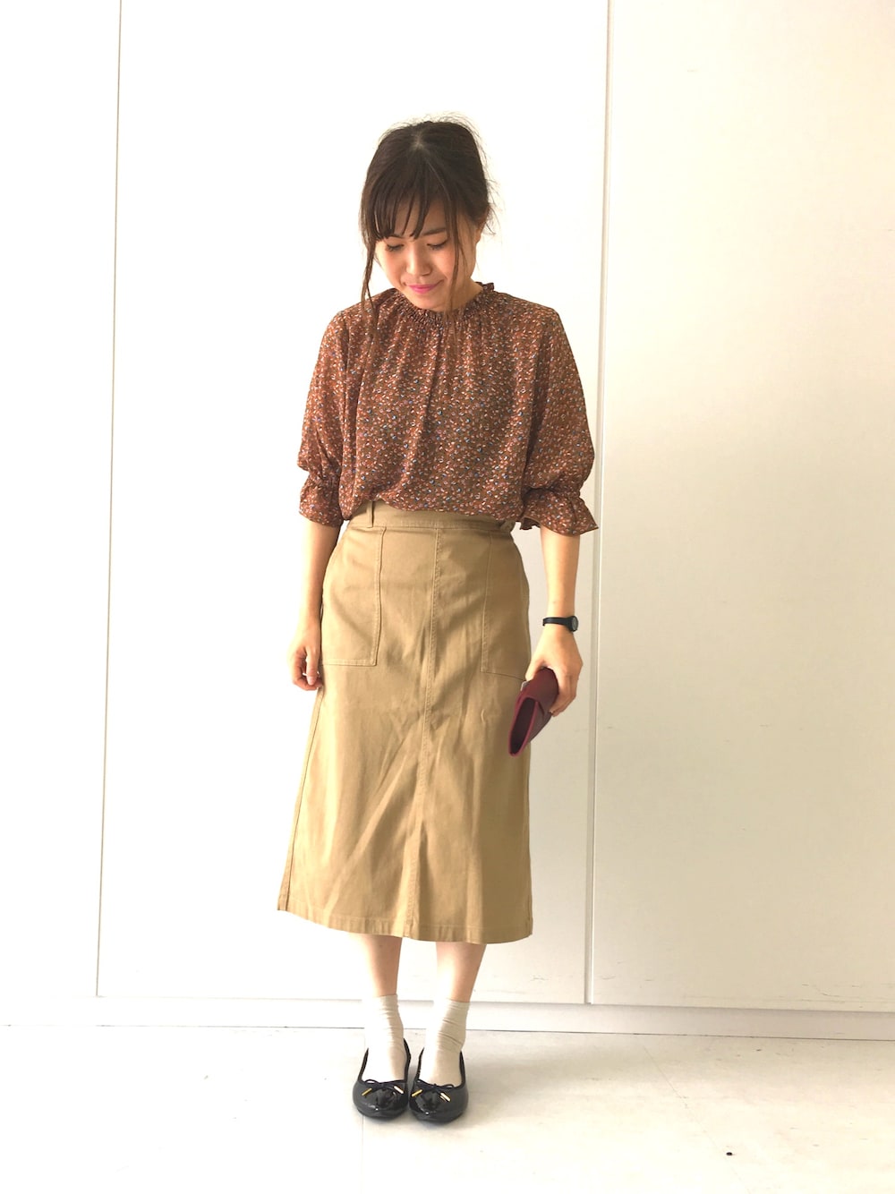 花柄ブラウス×タイトスカート。 バレエシューズと合わせて 女の子らしくしてみました! タイトスカートは 今なら30%オフです! 本日までなので残り時間わずか! ZOZOTOWN へ急いで!