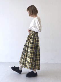 LeeのワッフルT×チェックスカート。 キャップもLeeです! 秋も明るいカラーが着たい!