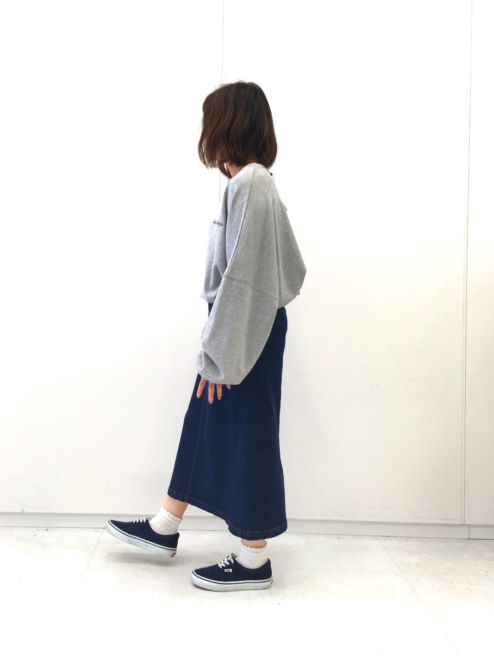 ゆるっとコーデ。 ビッグシルエットなスウェットは 小さくロゴが入ってて可愛い! タイトスカートでダボっとなりすぎないようにしました!