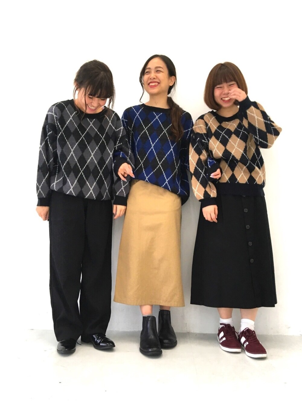 シミラールック。 新作のアーガイルニット! 色によって雰囲気が違います!