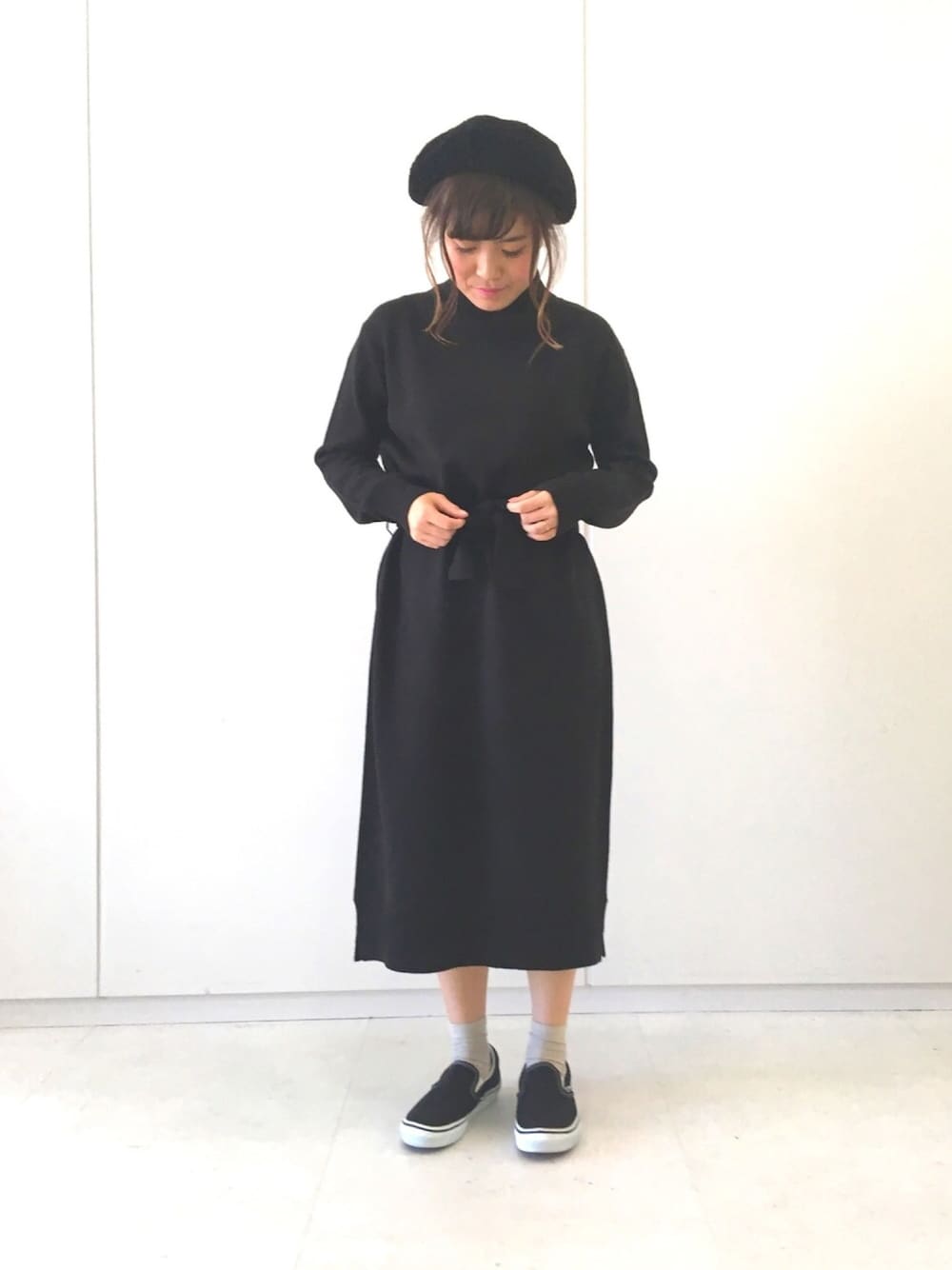 オールブラック! 楽チンワンピース! ボアのベレー帽も おすすめです♡